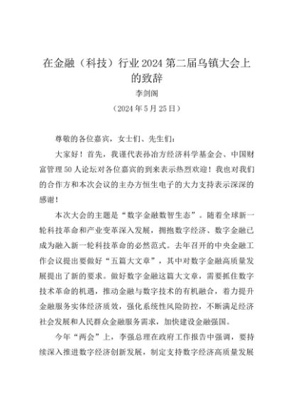 / 领导讲话:20240525在金融(科技)行业2024第二届乌镇大会上的致辞