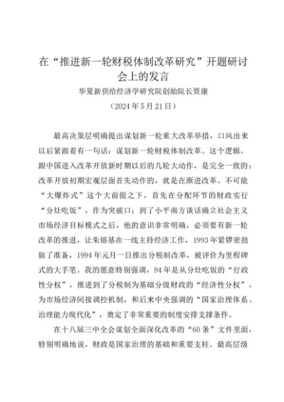 领导讲话:20240521在“推进新一轮财税体制改革研究”开题研讨会上的发言——华夏新供给经济学研究院创始院长