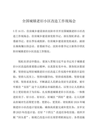 / 领导讲话:20240516全国城镇老旧小区改造工作现场会