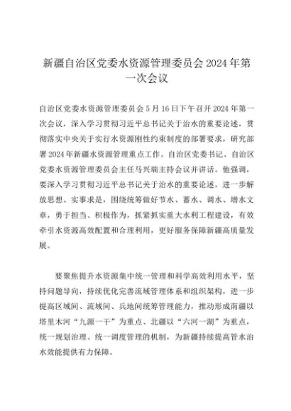 / 领导讲话:20240516新疆自治区党委水资源管理委员会2024年第一次会议