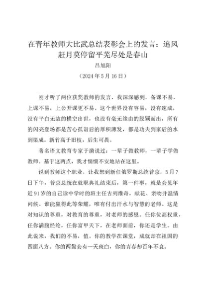 / 领导讲话:20240516在青年教师大比武总结表彰会上的发言:追风赶月莫停留平芜尽处是春山