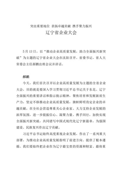/ 领导讲话:20240513辽宁省企业大会(推动企业高质量发展,助力全面振兴新突破)