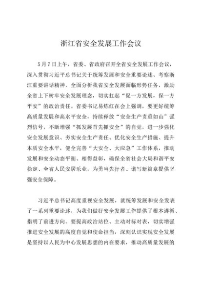 / 领导讲话:20240507浙江省安全发展工作会议