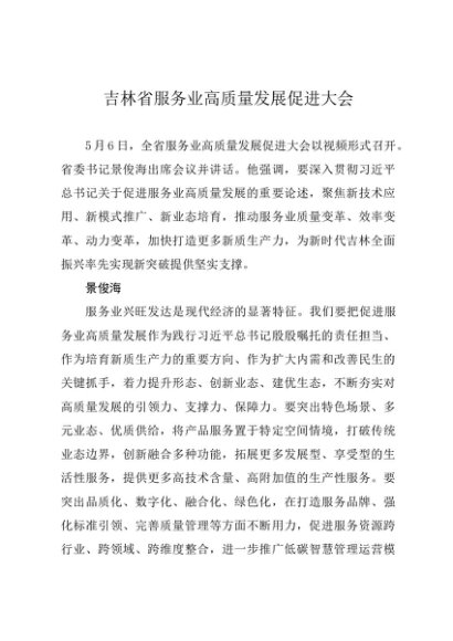 / 领导讲话:20240506吉林省服务业高质量发展促进大会