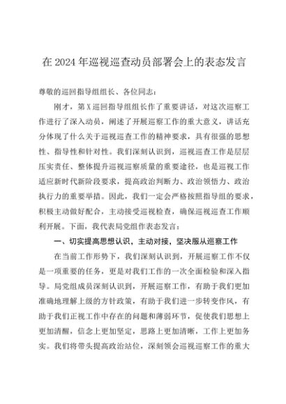 / 领导讲话:20240507在2024年巡视巡查动员部署会上的表态发言