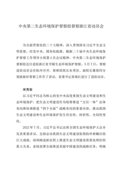 / 领导讲话:20240507中央第二生态环境保护督察组督察浙江省动员会