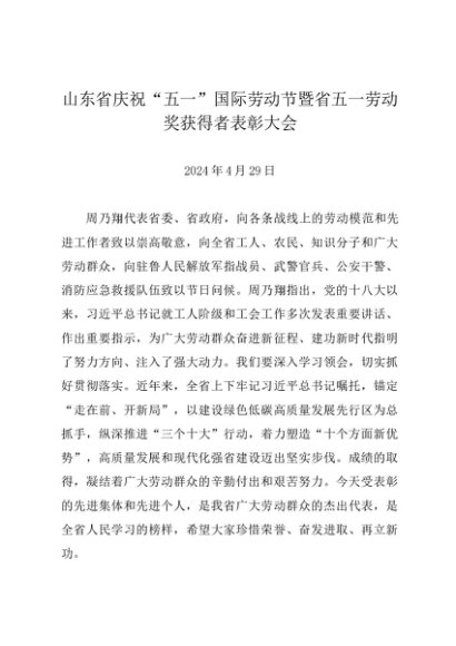 / 领导讲话:20240429山东省庆祝“五一”国际劳动节暨省五一劳动奖获得者表彰大会