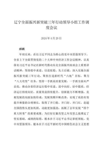 / 领导讲话:20240429辽宁全面振兴新突破三年行动领导小组工作调度会议