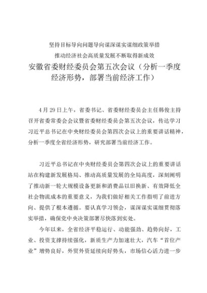 / 领导讲话:20240429安徽省委财经委员会第五次会议(分析一季度经济形势,部署当前经济工作)