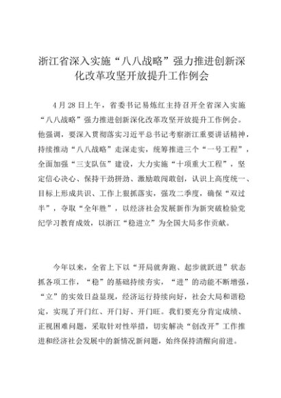 领导讲话:20240428浙江省深入实施“八八战略”强力推进创新深化改革攻坚开放提升工作例会