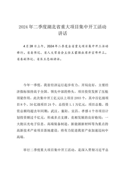 / 领导讲话:20240428第二季度湖北省重大项目集中开工活动讲话
