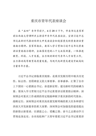 / 领导讲话:20240428(五四青年节)重庆市青年代表座谈会