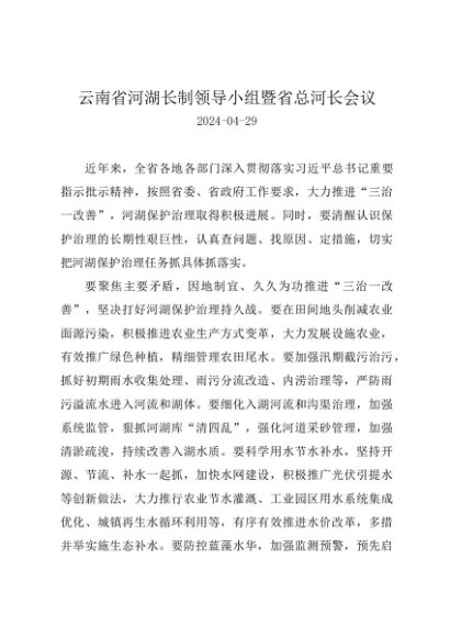 / 领导讲话:20240429云南省河湖长制领导小组暨省总河长会议