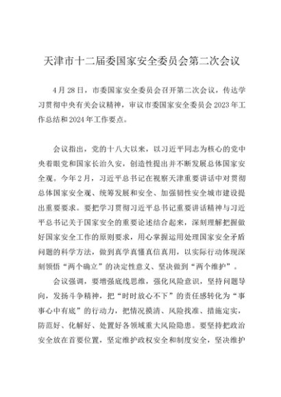 / 领导讲话:20240428天津市十二届委国家安全委员会第二次会议