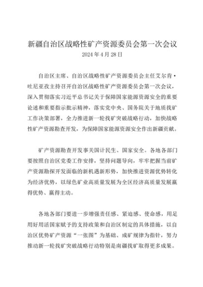 / 领导讲话:20240428新疆自治区战略性矿产资源委员会第一次会议