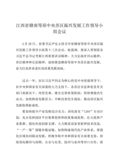 / 领导讲话:20240428江西省赣南等原中央苏区振兴发展工作领导小组会议