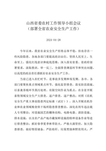 / 领导讲话:20240428山西省委农村工作领导小组会议(部署全省农业安全生产工作)
