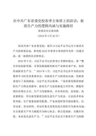 / 领导讲话:20240426在中共广东省委党校春季主体班上的讲话:新质生产力的逻辑内涵与实施路径——原重庆市长黄奇帆