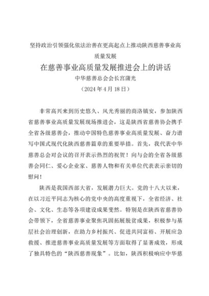/ 领导讲话:20240418在慈善事业高质量发展推进会上的讲话——中华慈善总会会长宫蒲光