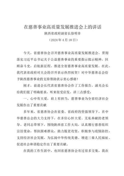 / 领导讲话:20240418在慈善事业高质量发展推进会上的讲话——陕西省政府副省长徐明非