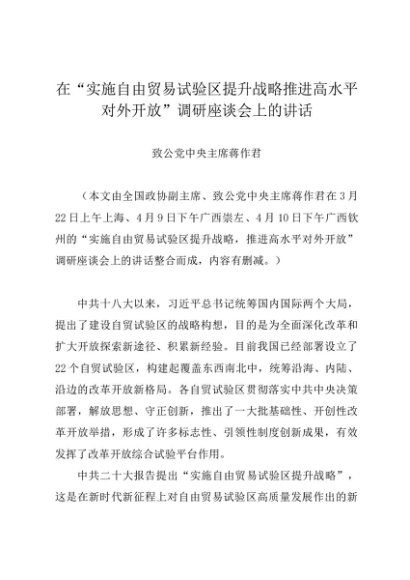 / 领导讲话:20240410在“实施自由贸易试验区提升战略推进高水平对外开放”调研座谈会上的讲话——致公党中央主席蒋作君