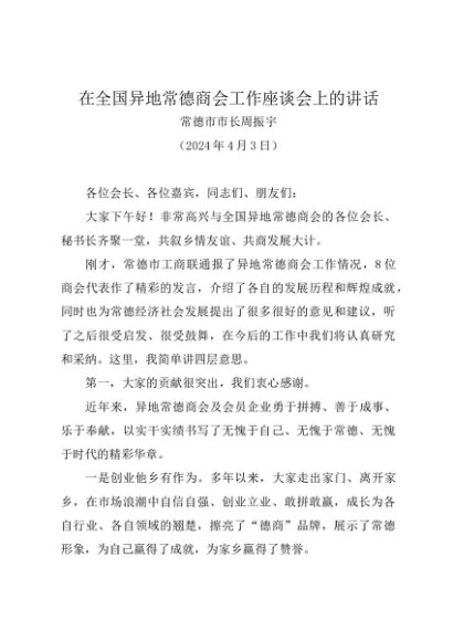 / 领导讲话:20240403在全国异地常德商会工作座谈会上的讲话——常德市市长周振宇