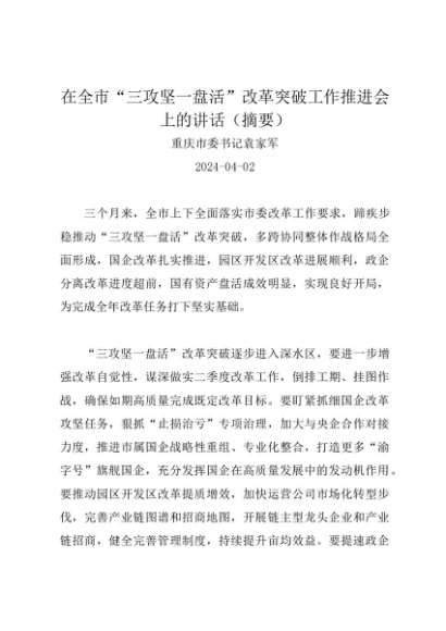 / 领导讲话:20240402在全市“三攻坚一盘活”改革突破工作推进会上的讲话(摘要)