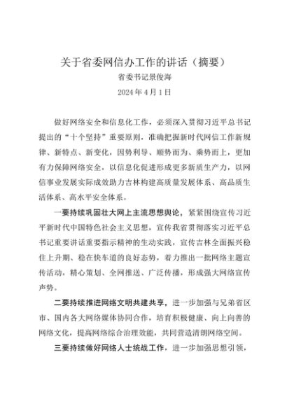 领导讲话:20240401关于省委网信办工作的讲话(摘要)——省委书记景俊海
