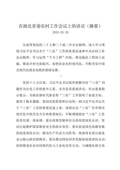 / 领导讲话:20240326(农村工作会议)在湖北省委农村工作会议上的讲话(摘要)