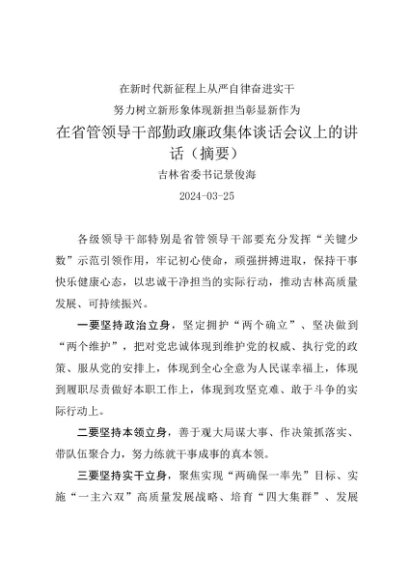 / 领导讲话:20240325在省管领导干部勤政廉政集体谈话会议上的讲话(摘要)——吉林省委书记景俊海