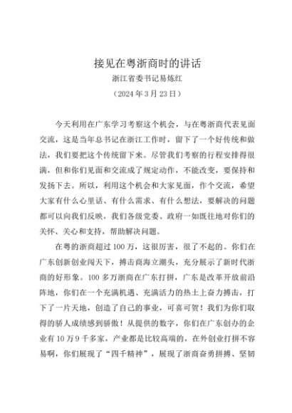 / 领导讲话:20240323接见在粤浙商时的讲话——浙江省委书记易炼红