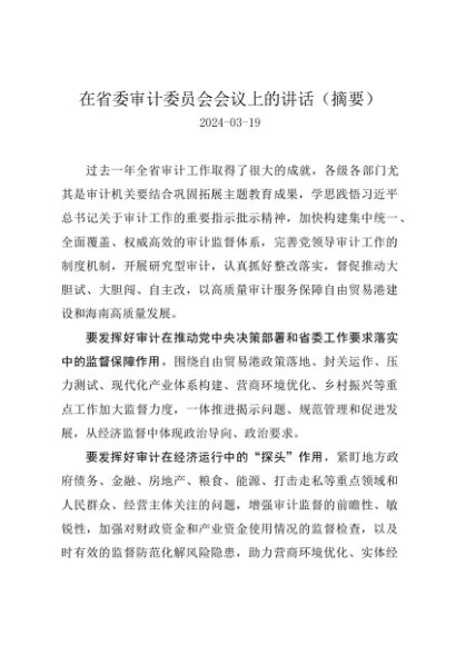 / 领导讲话:20240319(审计委员会)在省委审计委员会会议上的讲话(摘要)