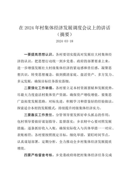 / 领导讲话:20240318在村集体经济发展调度会议上的讲话(摘要)