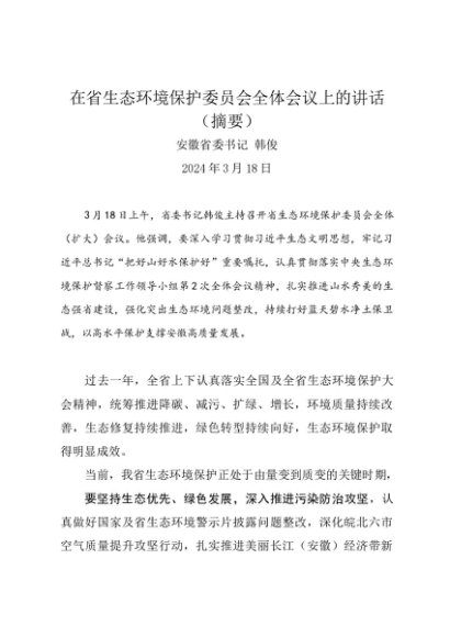 / 领导讲话:20240318(生态环境保护委员会)在省生态环境保护委员会全体会议上的讲话(摘要)——安徽省委书记 韩俊