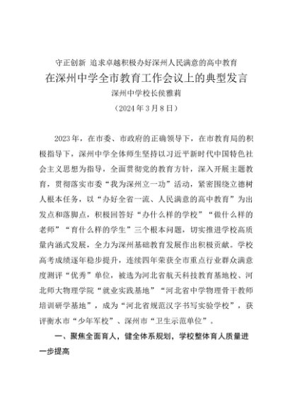 / 领导讲话:20240308在深州中学全市教育工作会议上的典型发言——深州中学校长