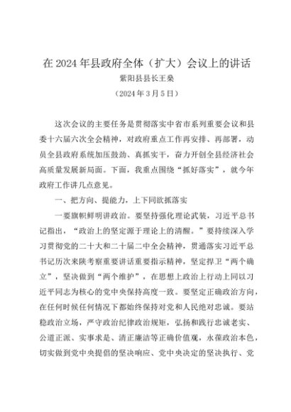 / 领导讲话:20240305在2024年县政府全体(扩大)会议上的讲话——紫阳县县长王燊
