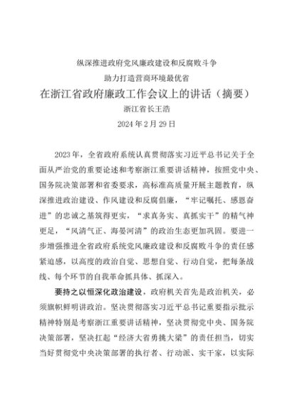 / 领导讲话:20240229在浙江省政府廉政工作会议上的讲话(摘要)——浙江省长王浩