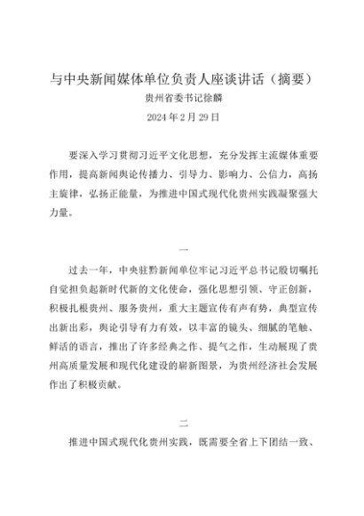 / 领导讲话:20240229与中央新闻媒体单位负责人座谈讲话(摘要)——贵州省委书记徐麟