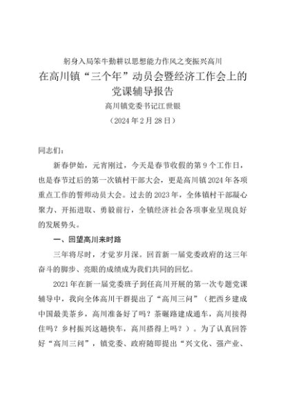 / 领导讲话:20240228在高川镇新年动员会暨经济工作会上的讲话——镇党委书记