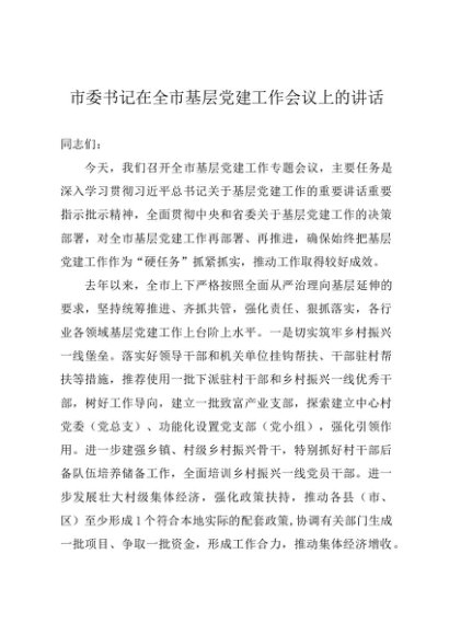 / 领导讲话:20240226(党建工作会议)市委书记在全市基层党建工作会议上的讲话