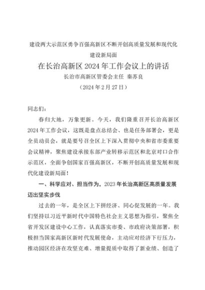 / 领导讲话:20240227在长治高新区2024年工作会议上的讲话——管委会主任