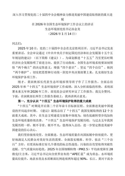 / 领导讲话:20260130生态环境部党组书记孙金龙:在2026年全国生态环境保护工作会议上的讲话