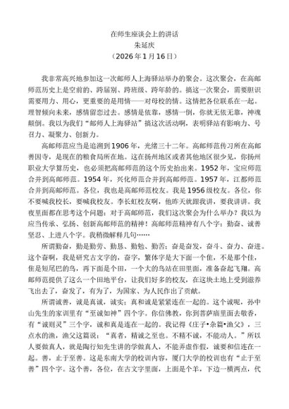 / 领导讲话:20260130朱延庆:在师生座谈会上的讲话