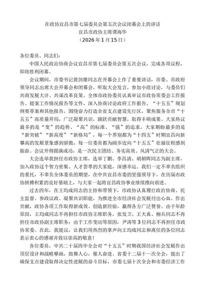 / 领导讲话:20260130宜昌市政协主席谭海华:在政协宜昌市第七届委员会第五次会议闭幕会上的讲话