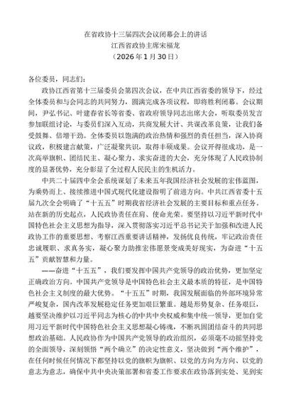 领导讲话:20260130江西省政协主席宋福龙:在省政协十三届四次会议闭幕会上的讲话