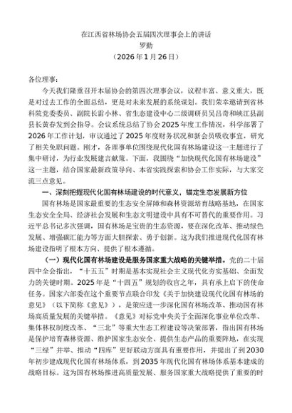 / 领导讲话:20260130罗勤:在江西省林场协会五届四次理事会上的讲话