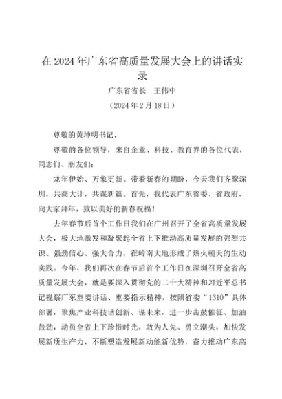 / 领导讲话:20240218在广东省高质量发展大会上的讲话——广东省省长 王伟中