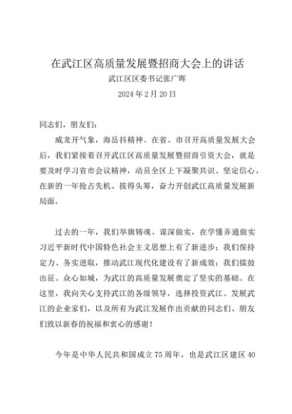 / 领导讲话:20240220在武江区高质量发展暨招商大会上的讲话——武江区区委书记