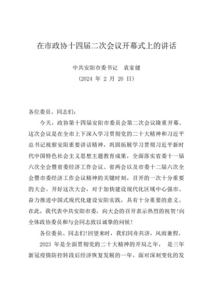 / 领导讲话:20240221在市政协十四届二次会议开幕式上的讲话——安阳市委书记