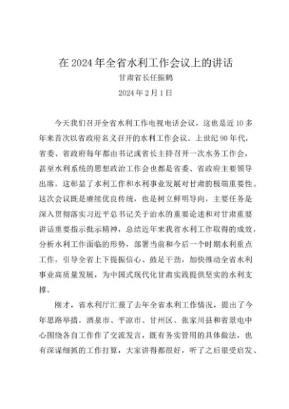 / 领导讲话:20240201在2024年全省水利工作会议上的讲话——甘肃省长任振鹤